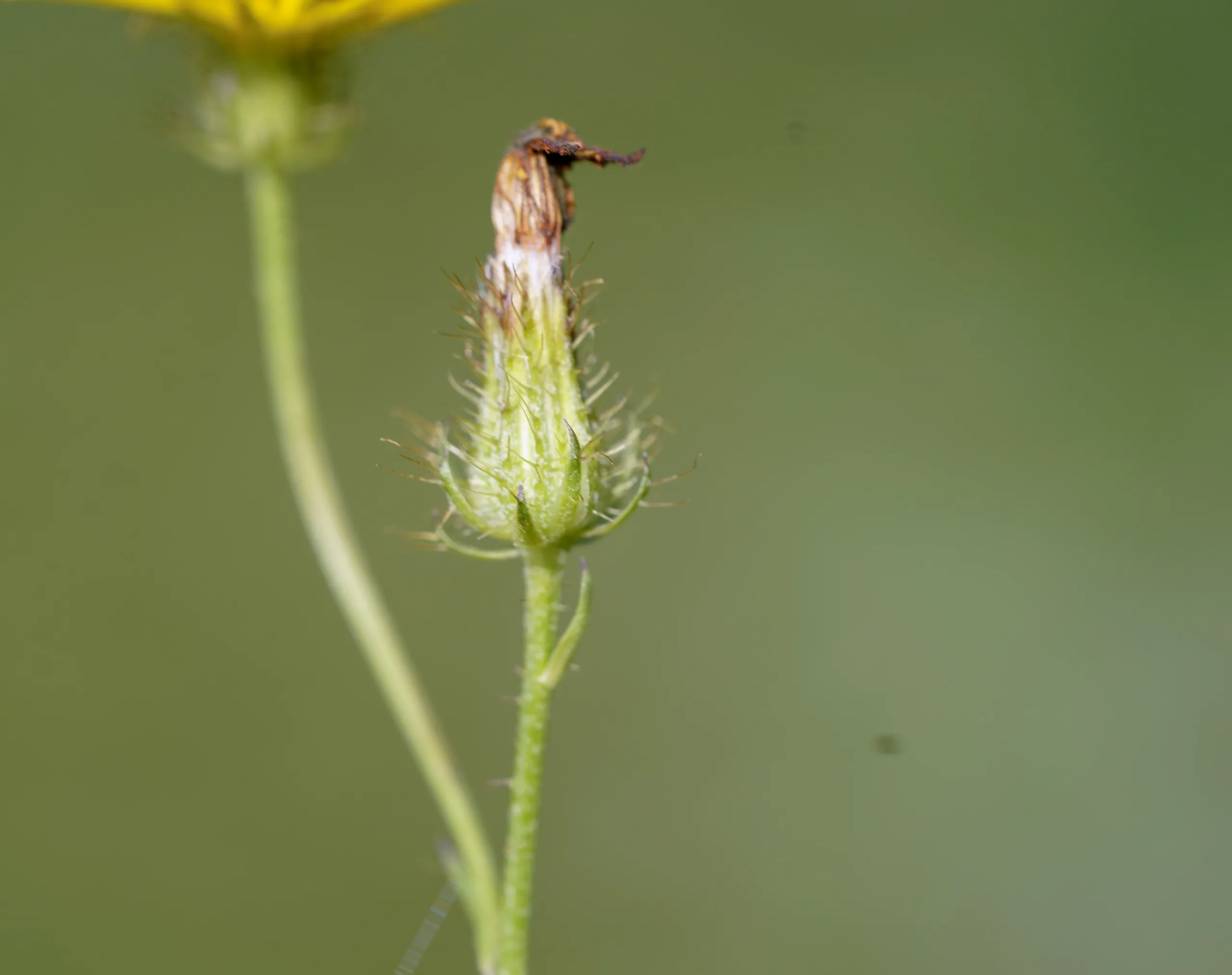 İnvolukrum 7 ila 15 mm uzunluğunda ve kısa kaba tüylerle birlikte uzun salgılı ya da salgısız tüylüdür. Çiçek tablası kısa kirpikli ya da uzun paleyamsı pulludur. Dilsi çiçekler 5 ila 15 mm uzunluğunda, sarı ve sıklıkla arka yüzeyi kırmızı bezelidir. Boyuncuk dalları sarı ya da soluk yeşil renklidir. Kapçıklar 6 ila 13 mm uzunluğunda, soluk ila orta kahverengi, çıplak, sipikulat ya da havlı, genellikle iki formlu ve dıştakiler neredeyse her zaman gagalıdır. Sorguçlar involukrumu tamamıyla aşmış ya da nadiren gelişmemiştir. Dilimizde deli kıskıs adı ile bilinmektedir.