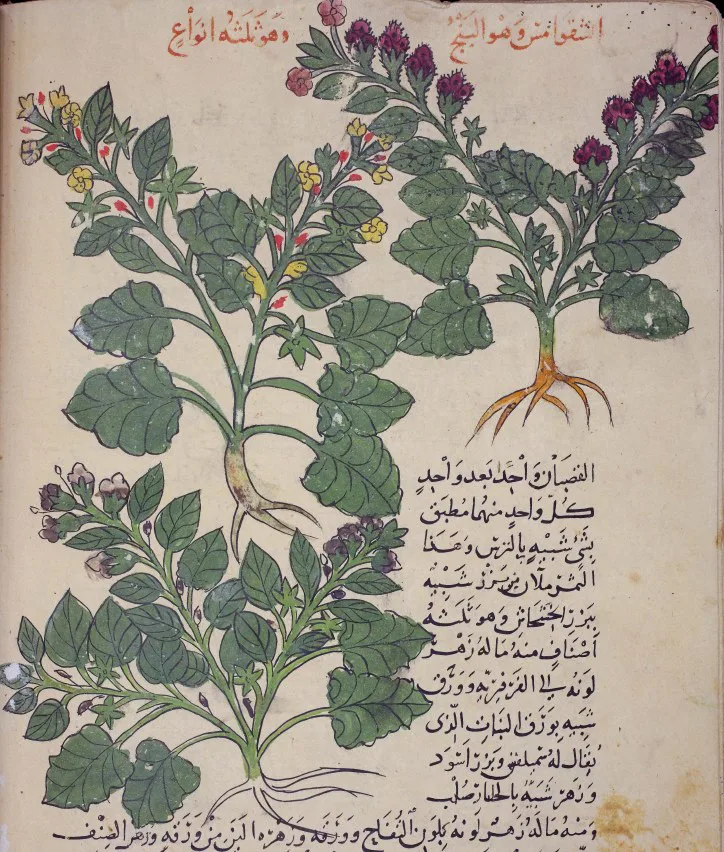 Bu maddeye Hyoscyamus aureus ve Hyoscyamus albus taksonları da dahildir. © Doğan, Hüseyin (2023). Anadolu Türk Uygarlığında Bitkiler (XIII-XV. yy.). Yayımlanmamış Doktora tezi, Kocaeli Üniversitesi, Sosyal Bilimler Enstitüsü, Kocaeli, s.213-215.